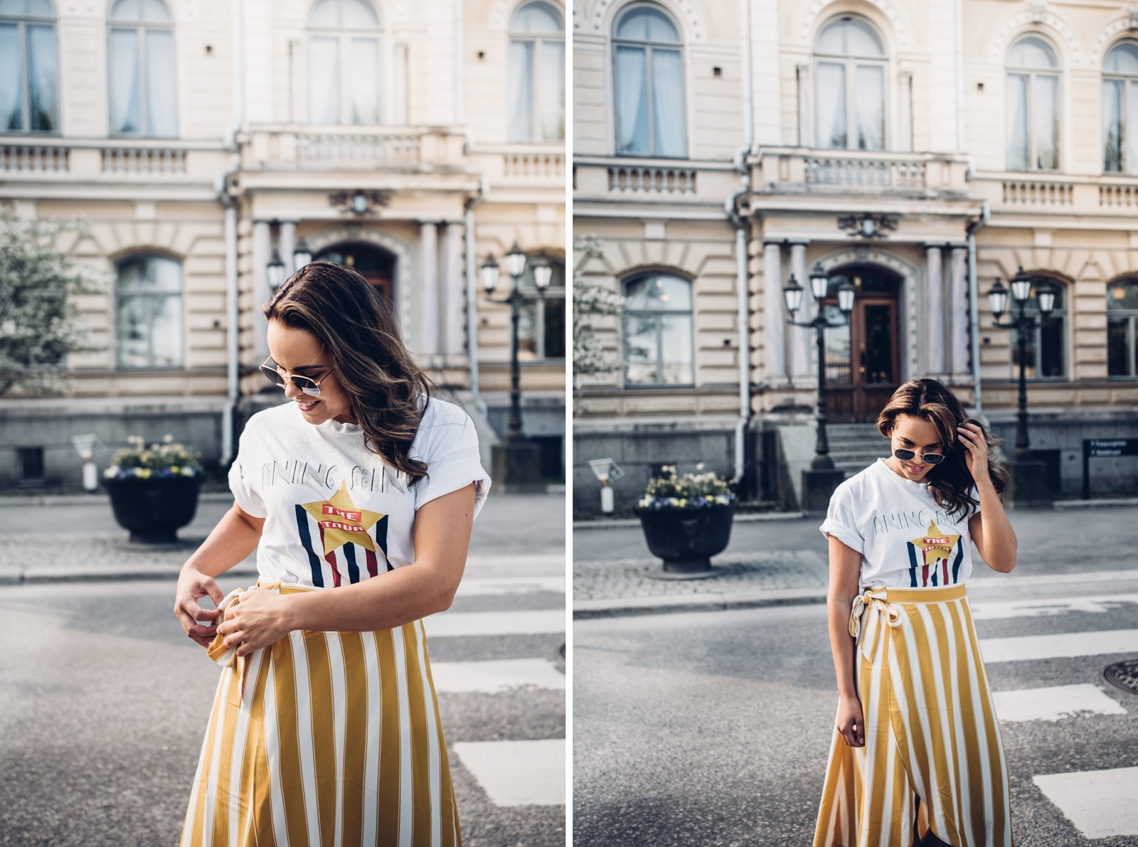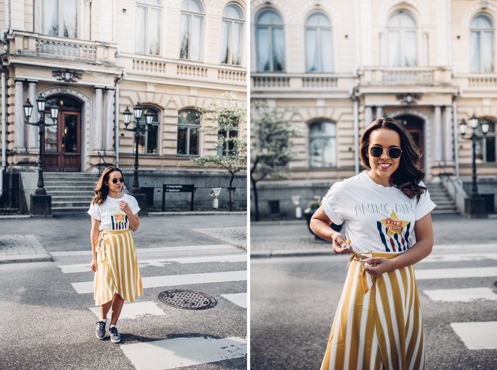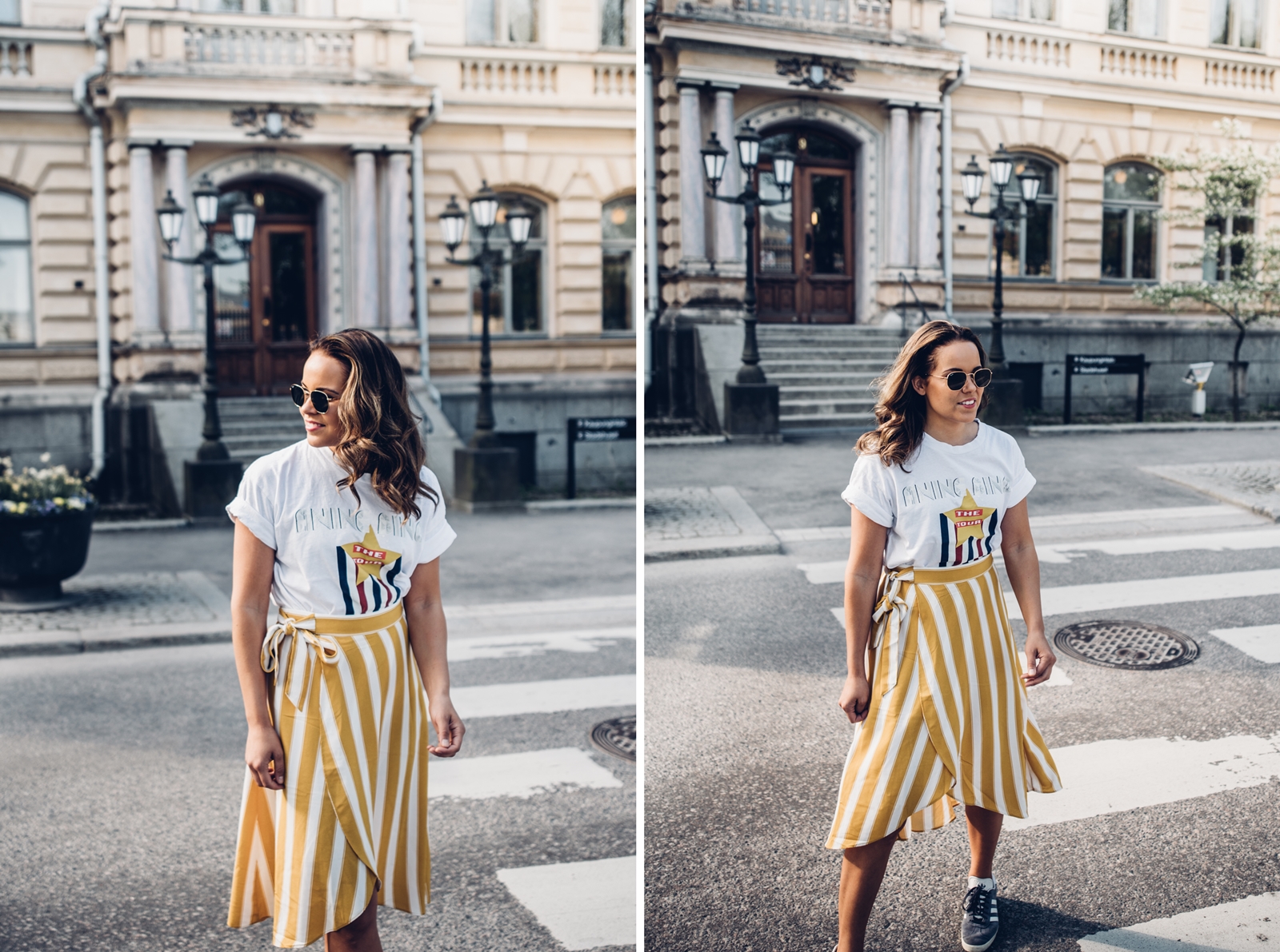 t-paita Anine Bing for Gina Tricot // hame Monki // kengät Adidas Gazelle // aurinkolasit Ray-Ban
