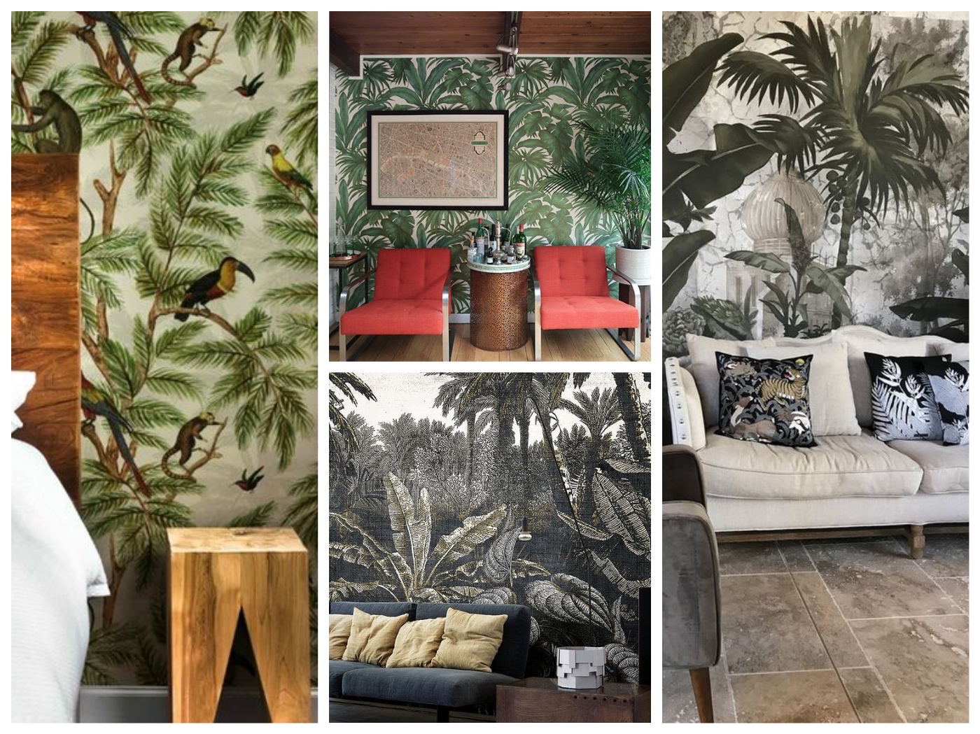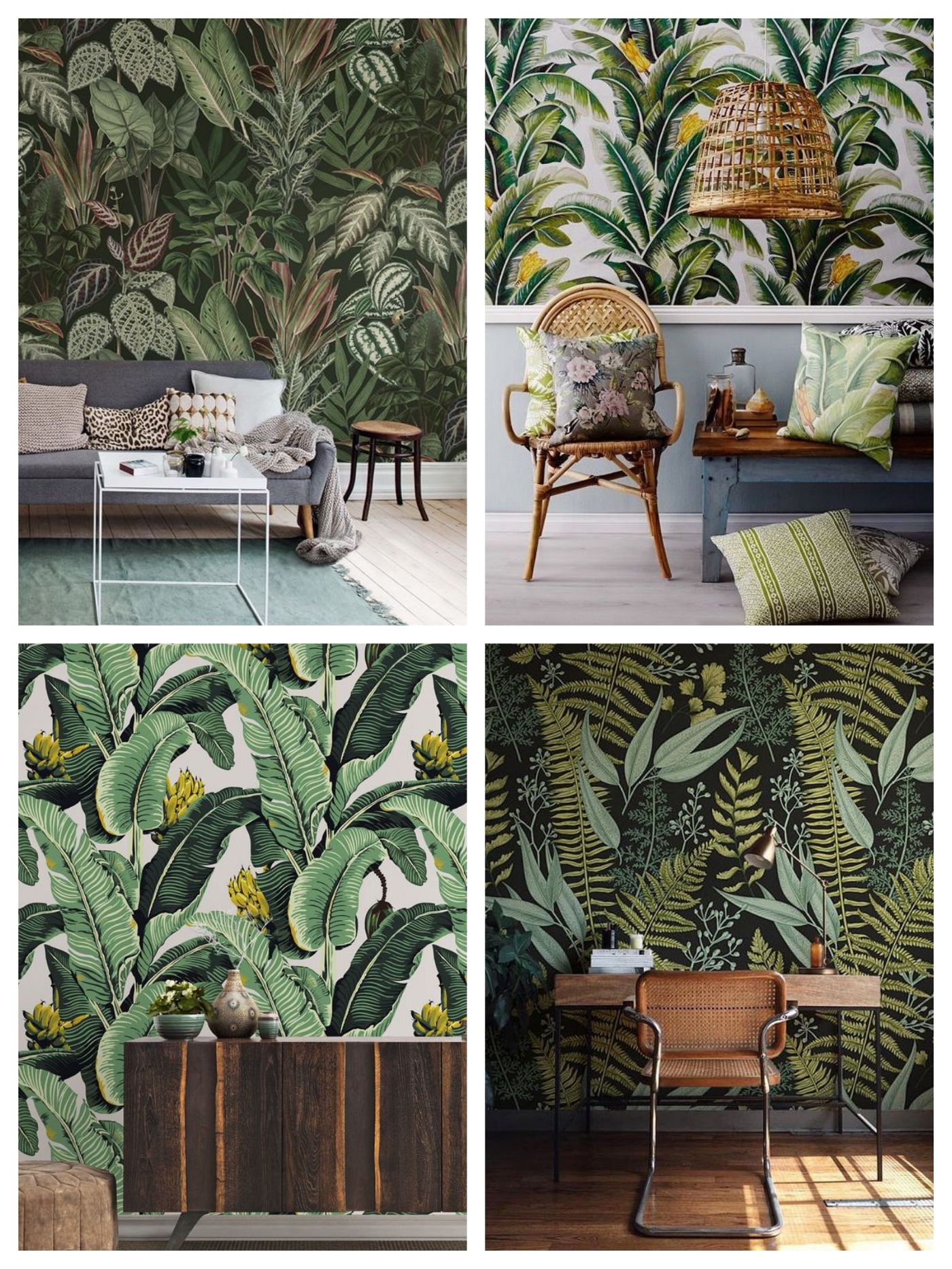 Näin yhtenä päivänä Pinterestiä selaillessani ihan sairaan hienon viidakkotapetin jossain sisustuskuvassa ja sen jälkeen se oli menoa. Jotain samantyylistä olisi ehdottomasti saatava myös omaan kotiin. Ei liian isolle pinnalle, mutta johonkin pienemmälle seinän pätkälle tehosteeksi. Minulla tuli heti mieleen parikin kohtaa omassa kodissamme, johon kuviollisen tapetin voisi asentaa. Nyt pitäisi vain löytää mieleinen tapetti ja sen jälkeen päättää se lopullinen paikka sille!