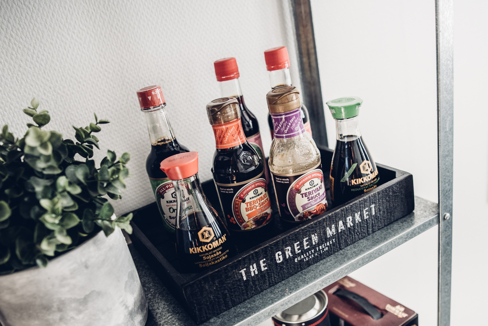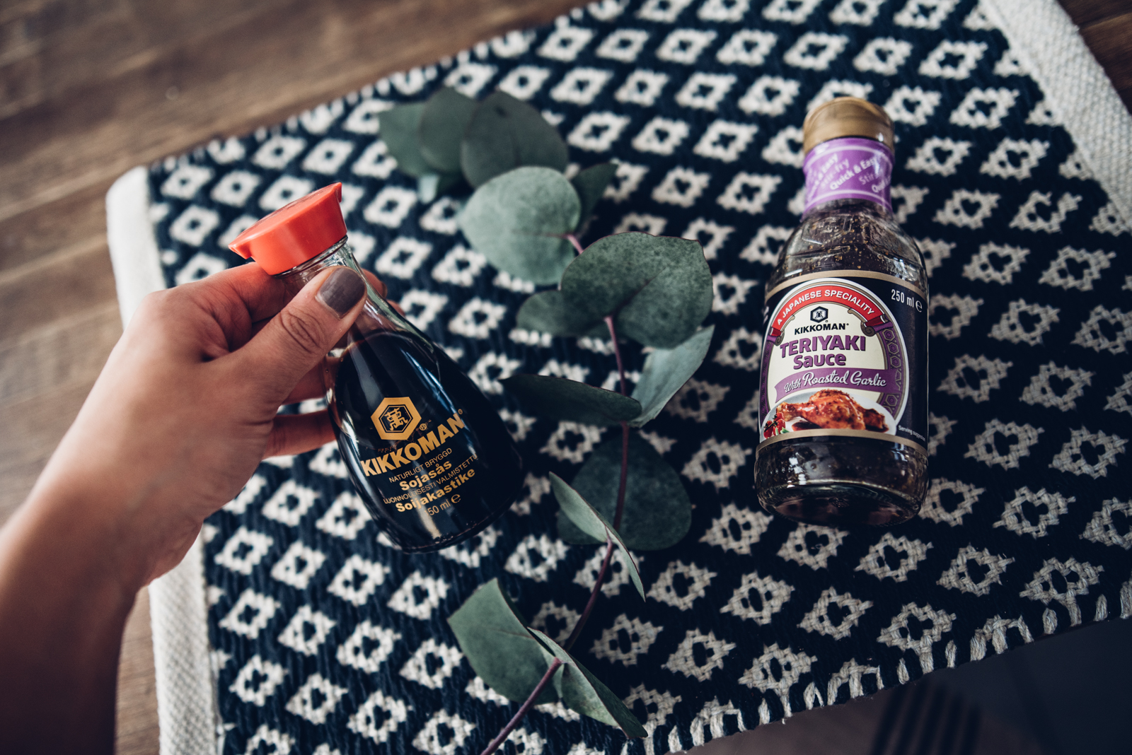 Tällä kertaa päästiin kokeilemaan Kikkomanin tuotteita ja ideoimaan erilaisia reseptejä niiden ympärille. Kikkomanin klassinen punakorkkinen soijakastike on varmasti kaikille tuttu, mutta lisäksi samalta merkiltä löytyy laaja kokoelma myös muita kastikkeita. Erityisesti me keskityimme nyt testailemaan muutamia maustettuja teriyakikastikkeita sekä erilaisia soijakastikkeita. Tykkäämme molemmat aika vahvasti mausteuista ruuista ja meillä oli jo entuudestaankin kokemusta Kikkomanin monipuolisista tuotteista. Soijakastikkeet mielletään monesti vain aasialaisen ruoan yhteyteen ja eipä se ole ihmekään, sillä sieltä se on ihan alunperinkin kotoisin ja monissa aasian maissa sitä käytetään todella laajasti. Soijakastiketta on kuitenkin käytetty pitkään yleismausteena myös länsimaissa ja aasialaisen ruokakulttuurin laaja levinneisyys on tietenkin tuonut soijakastikkeen entistä tutummaksi (esim. sushi). Soijakastiketta voi kuitenkin käyttää tosi monipuolisesti ruoan valmistuksessa niin maustamiseen kuin suolan korvikkeeksikin.